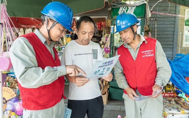 国网湖北电力员工对辖区商铺开展上门走访宣传。陈静摄